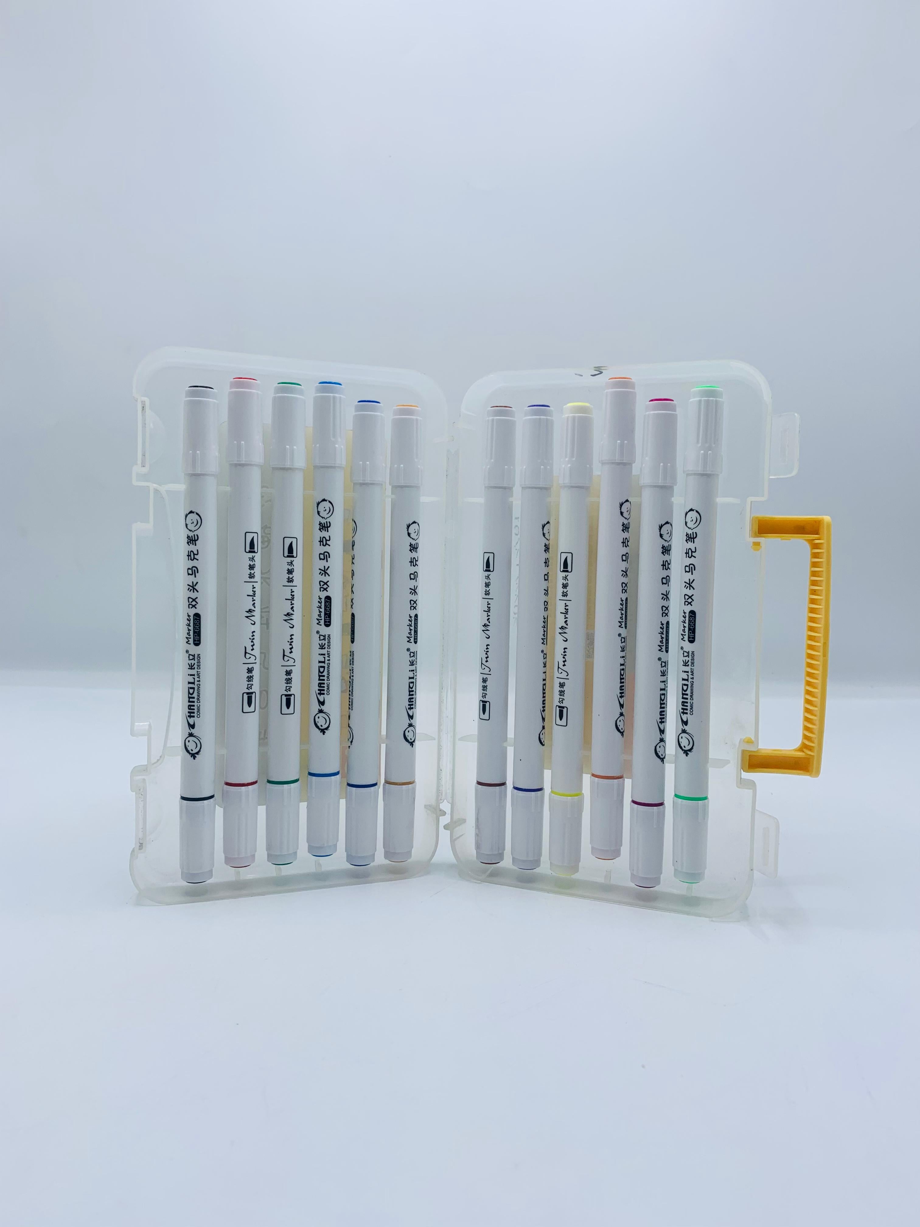 Bring your creativity to life with the Fineline Twin-Tip Marker Set, featuring 12 vibrant, washable colors packed inside a compact and durable carrying case. Each marker is designed with dual tips—a fine tip for precise detailing and a broader tip for smooth coloring—making this set perfect for kids, students, artists, journaling lovers, and DIY creators. The ink is non-toxic, quick-drying, and washable, ensuring a safe and mess-free art experience for all ages. Whether for school projects, sketching, or everyday coloring fun, this set delivers bright results with easy portability.
